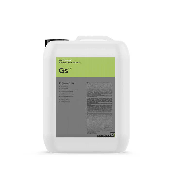 Koch Chemie Green Star works exceptionally well in a foam cannon for pre washing heavily soiled vehicles. Adding this alkaline cleaner to your snow foam mixture boosts the cleaning power to strip road film and bug splatter. It helps break down stubborn dirt before you touch the paint which reduces the risk of swirl marks during the contact wash stage.