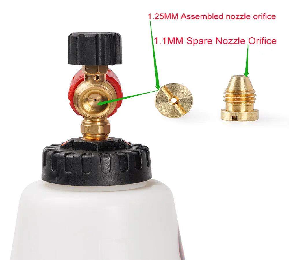 • Produces 30% denser  foam than the classic foam cannon, while  using as little as 100ml of shampoo per 900ml water(1:9 ratio). That means you can create more foam while using less shampoo.
